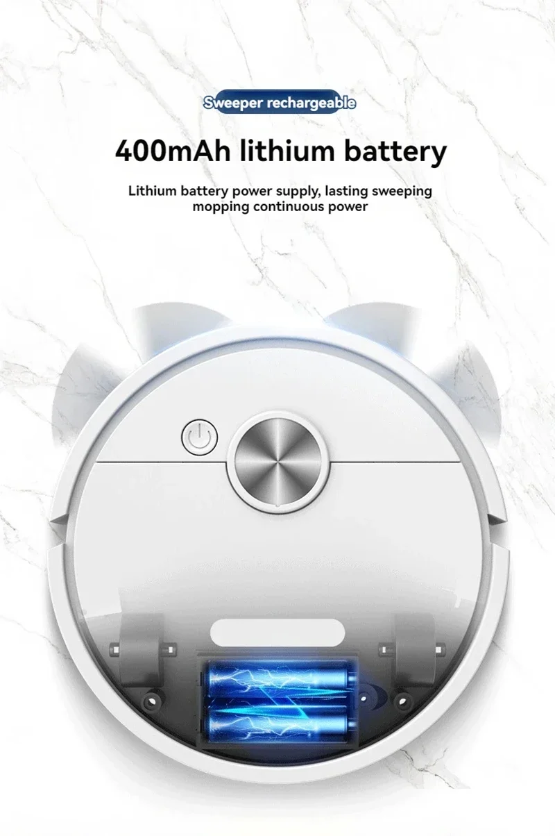 O Smart Sweeping Robot vem com uma bateria de alta capacidade que fornece até 2,5 horas de limpeza contínua, permitindo limpar grandes áreas sem precisar recarregar.